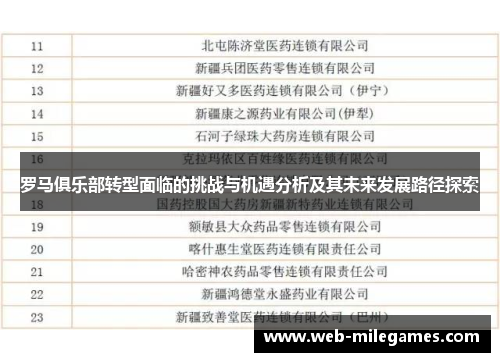 总体来看,罗马俱乐部的转型之路充满了挑战,但也充满了机遇。在面临外部环境剧变的背景下,俱乐部必须迅速调整战略,抓住数字化转型与全球化发展的机遇。文化与品牌的塑造,以及青训体系的建设,将成为俱乐部未来发展的核心竞争力。